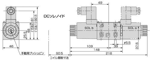 (注)SA-G01-H※※-R※※-31時(shí),電磁鐵安裝在圖的相反位置(SOL a)。